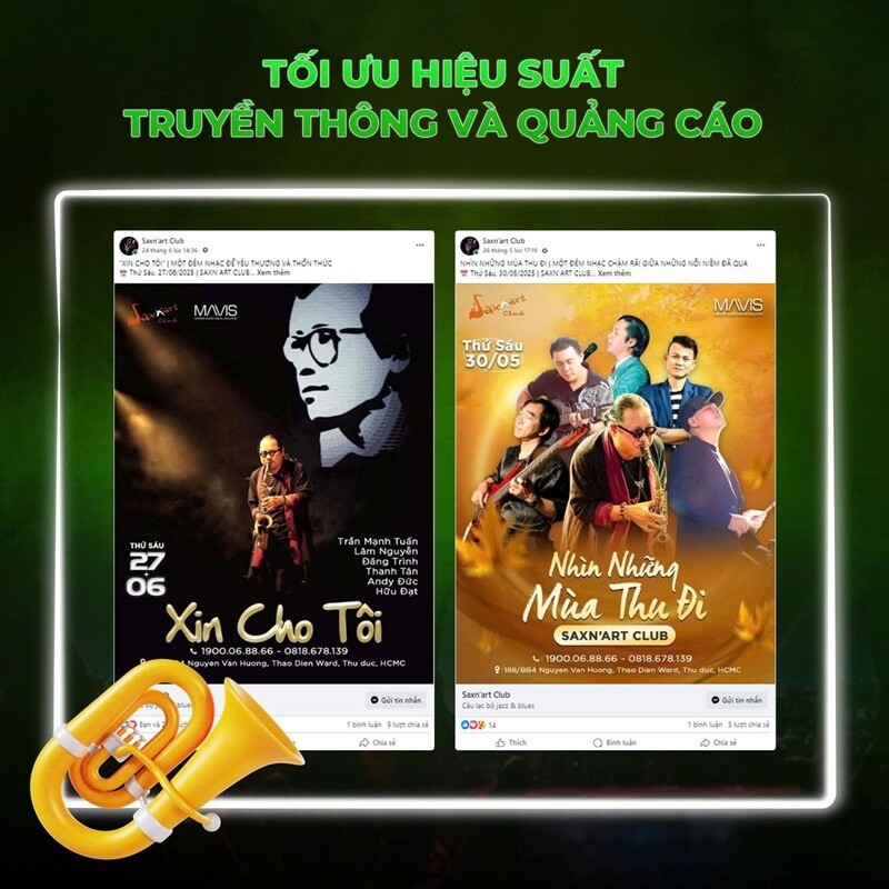 • Truyền tải giá trị nghệ thuật: Thể hiện rõ bản sắc, tinh thần và phong cách âm nhạc đặc trưng của Saxn’art thông qua hệ thống nội dung đồng nhất.