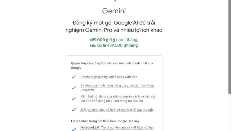 Để sử dụng Veo 3 AI, bước đầu tiên bạn cần có là một tài khoản Google AI Pro. Việc đăng ký rất đơn giản và bạn có thể bắt đầu ngay với gói dùng thử miễn phí trong 1 tháng.