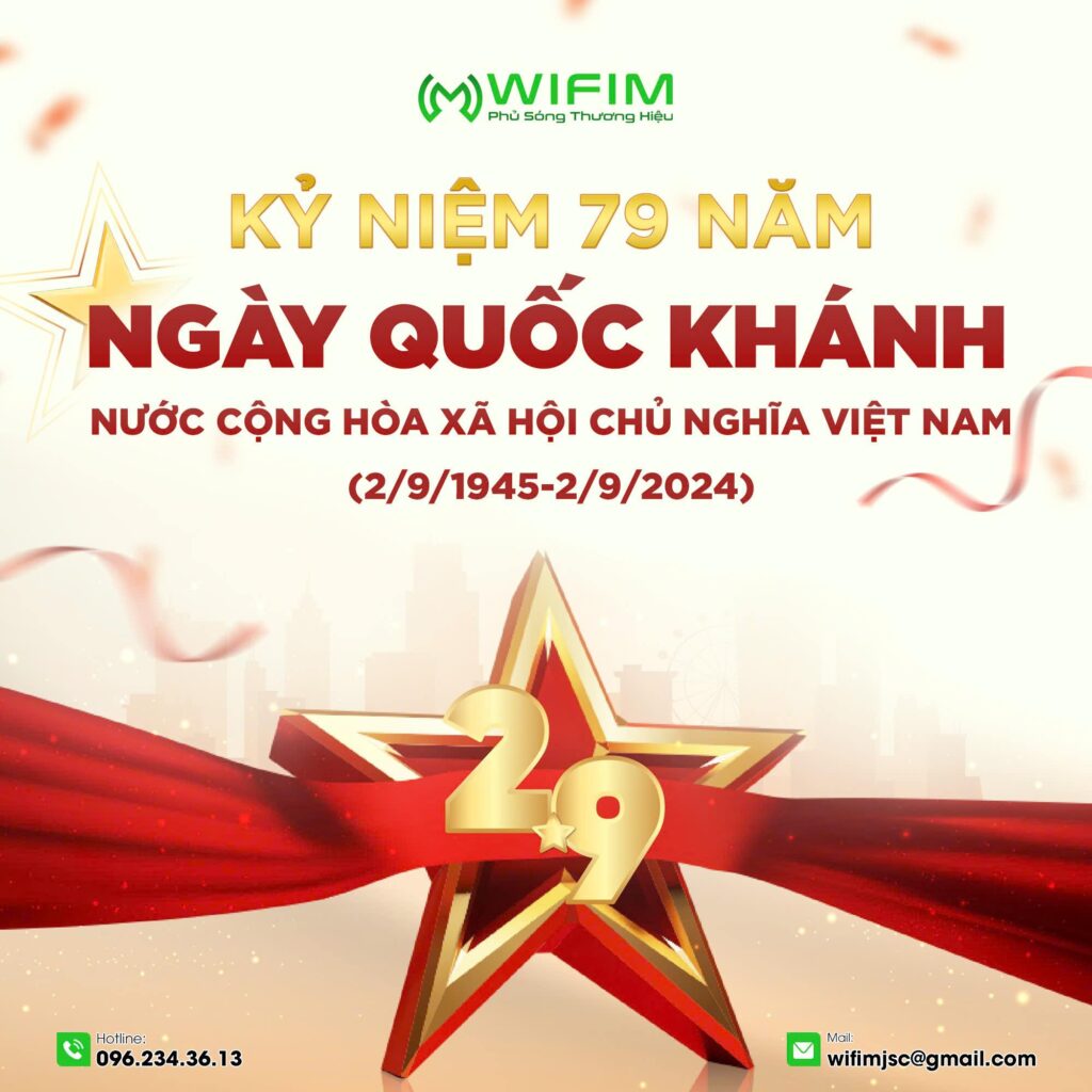 Nhân kỷ niệm 79 năm ngày Quốc khánh Việt Nam, Công ty Cổ Phần Công Nghệ WIFIM xin gửi lời chúc mừng đến toàn thể nhân dân Việt Nam và những người con xa quê đang sinh sống, làm việc khắp nơi trên thế giới.