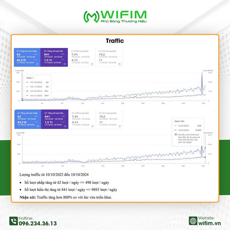 Nhận xét: Traffic tăng hơn 800% so với lúc vừa triển khai.