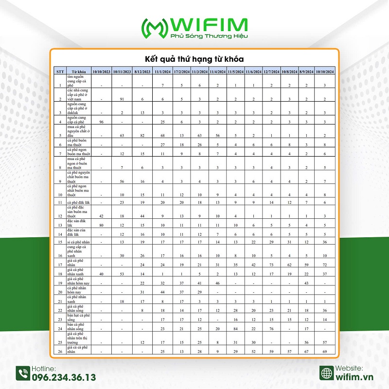 Nghiên cứu từ khóa chi tiết: Đội ngũ WIFIM đã tiến hành phân tích sâu thị trường ngành cà phê, xác định từ khóa chính cần tập trung và các nhóm từ khóa phụ liên quan, đảm bảo bao phủ đầy đủ hành trình tìm kiếm của khách hàng.